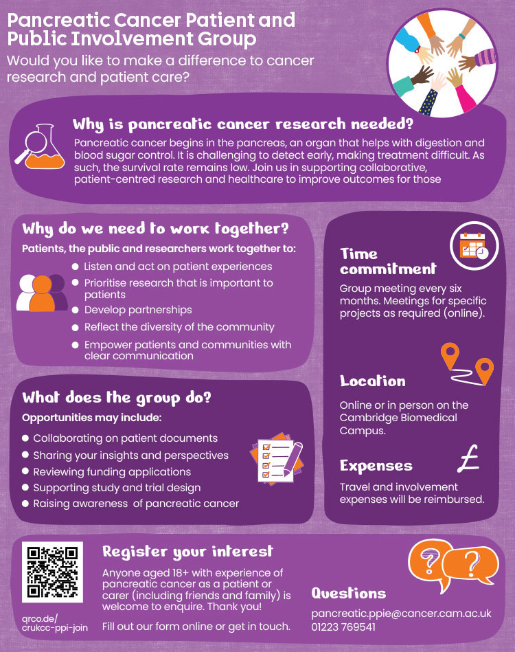 Sign up to be a member of our PPI Group and select Pancreatic Cancer as your first preference.